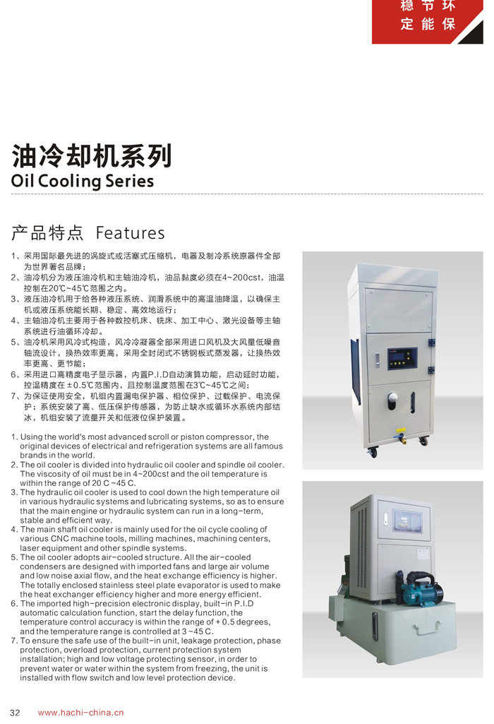 (4)45℃以上。本公司推薦液壓油合理的溫度控制范圍為35℃-45℃.